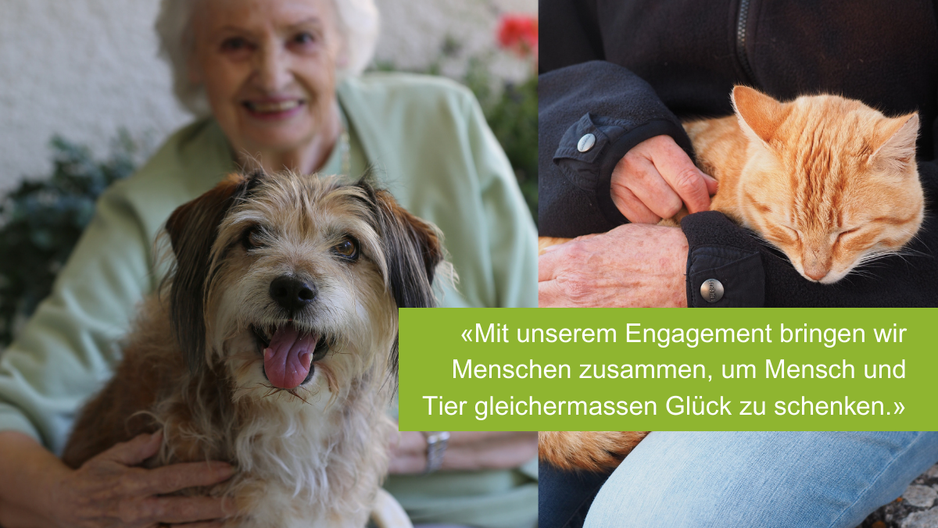 Hier setzt Mensch und Tier im Glück an: Mit einem engagierten Netzwerk von Freiwilligen unterstützen wir Tier und Mensch, damit sie zusammenbleiben können.